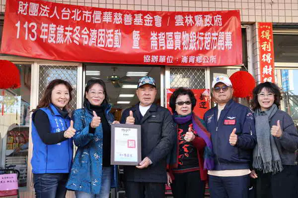 【記者張德欽、張珊瑜、許麗秀、張耿慈/雲林報導】雲林縣政府及財團法人台北市信華慈善基金會於(12)日上午共同舉辦113年度歲末冬令濟困活動暨雲林縣政府崙背區實物銀行超市啟用記者會,信華慈善基金會今日起將發放冬令濟困金給崙背鄉97戶低收入戶(每戶3,000元),副縣長謝淑亞特致贈感謝狀,感謝基金會長期的愛心善舉。