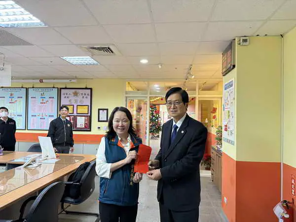雲林縣榮服處姚辰蕙處長也特別向主任委員報告,榮服處經常透過訪視工作去發掘特殊個案,如近期即發現有一位義務役傷殘榮民,其生活困苦,因長期臥床導致照顧者不易照顧,當知曉個案後,便連結多家企業爭取資源,發起捐贈募得款項為榮民購買電動床,以減輕照顧者的負擔,也提升在家的生活環境,嚴主任委員聽完後予以高度肯定,也感謝大家過去一年的辛勤付出,離去前還特別頒發慰勉金給榮服處,以嘉勉同仁的工作辛苦,並期許在新的一年中,繼續秉持初心,共同為榮民榮眷創造更幸福的未來。