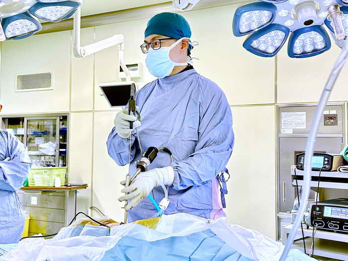 圖二:陳明慶醫師進行脊椎內視鏡手術。