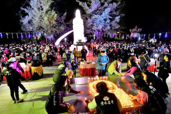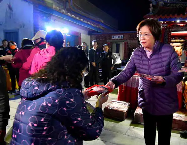 圖文:彰化清水岩寺社區歲末點燈祈福 迎春納福保平安千份蛇年錢母結緣。