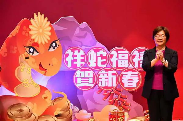立法委員謝衣鳯表示,今天來團拜一起迎接新的一年,相信在王惠美縣長的帶領之下,縣府與各界會持續一起努力,讓好運、希望、幸福都留在彰化。祝大家蛇來賺大錢、蛇來好彩頭,萬事平安大發財。