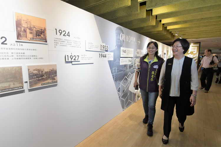 圖二:縣長王惠美參觀彰化300博覽會「有彰歷」展區。(記者吳三伯攝)