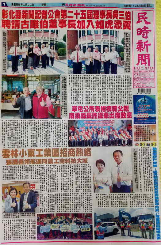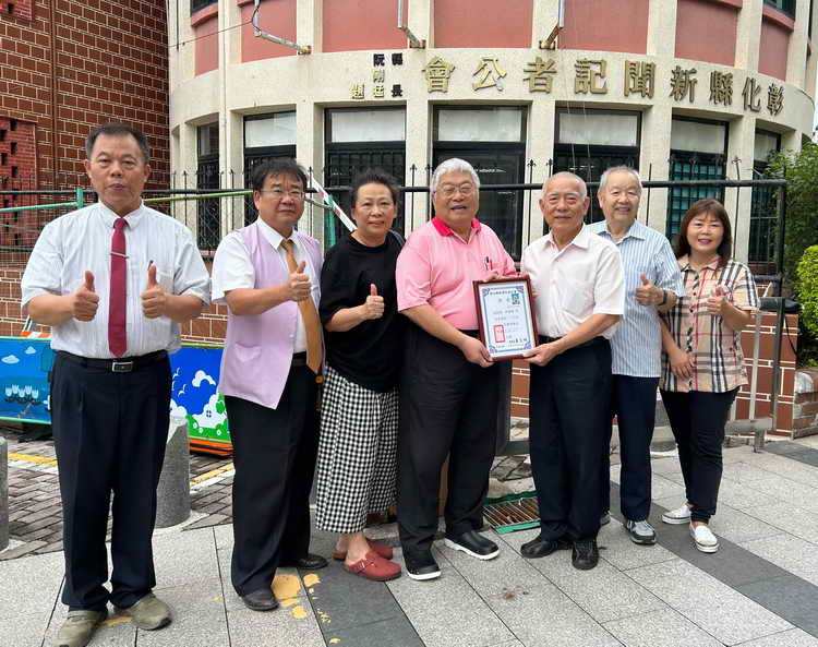 圖一:彰化縣新聞記者公會由理事長吳三伯、常務監事張德欽、秘書長林棋、前榮譽理事長蘇副賓等特別聘請台灣玻璃館董事長林肇睢(古雎伯)為彰化縣新聞記者公會第二十五屆榮譽理事長。