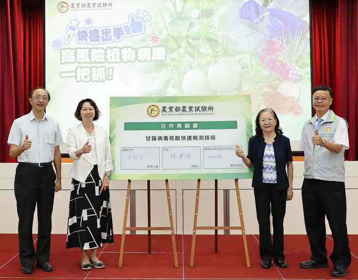 該所進一步表示,國內青蔥、甘藷、瓜類、茄科、十字花科蔬菜、百合及蘭花之經濟產值超過569億元,但常受病毒與細菌危害,造成經濟損失。該所針對無性繁殖作物如青蔥與甘藷田間傳播之重要病原建立快檢技術,自源頭管控種苗的健康品質,確保農產品的永續生產。該所與生技公司合作研發高準確性快篩免疫試條,可商品化應用於檢測蘭花及青蔥病毒,15分鐘立現檢測結果。另外還有針對蔬菜軟腐細菌及瓜類常見病毒的核酸快檢技術,可在1小時內完成檢測,相較於傳統PCR核酸檢測法需3-4小時,快檢技術具有省時、操作簡便及不需昂貴設備的優點,未來將推廣至第一線產地應用。