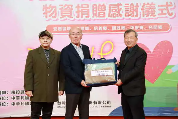 【記者張德欽、張珊瑜、張耿慈、趙志剛/南投報導】縣府社會及勞動局10日上午在一樓中庭舉行「寒冬送暖關懷獨居長者物資捐贈感謝儀式」,由副縣長王瑞德主持;會中,中華民國普天慈善會理事長林美珠、台灣丸高實業股份有限公司董事長藤本隆攜手捐贈電毯、食物箱及發熱毯等總金額近500萬元物資,由王副縣長代表接受,並致贈感謝狀表達謝忱。王副縣長表示,這些物資將用於關懷仁愛鄉、信義鄉、國姓鄉、中寮鄉及名間鄉等5地獨居長者,期盼藉此善行義舉,拋磚引玉,讓社會大眾起心動念參與公益慈善,使暖流綿延不絕,讓南投成為幸福且溫暖之宜居城市!