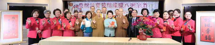 覺居法師表示,農曆十二月初八為佛陀成道日,又稱「法寶節」,佛教徒以多樣食材熬成粥供佛,稱為「臘八粥」或「佛祖粥」。其烹煮過程相當講究,「一碗精心熬煮的臘八粥」宛如市府團隊,由分布在不同崗位的同仁各司其職共同協力為台中市政努力,將台中打造為更美好的家。
