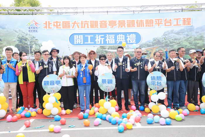 【記者張德欽、張珊瑜、張祐瑄、張耿慈、趙宏進/中市報導】北屯區大坑9號步道終點的觀音亭,擁有遠眺台中市景的絕佳地理位置,更為山友休息的中繼站,考量過去建築工法較為脆弱,為提供安全、優良的休憩空間,市府建設局7月1日舉行大坑觀音亭景觀休憩平台開工典禮,將建置各族群皆可適用的安全休憩環境,預計明年上半年完工。市長盧秀燕7月1日出席典禮時指出,觀音亭完工後,對促進該地的觀光產業大有幫助,歡迎全台遊客一起到台中健行。