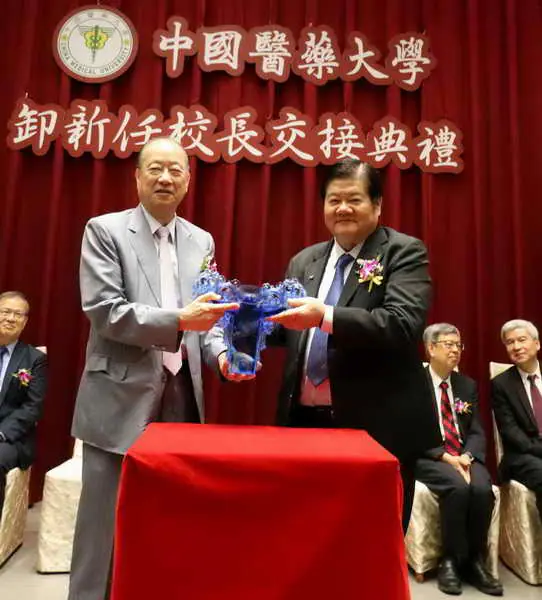 中國醫藥大學1日上午在水湳校區舉行卸新任校長交接典禮,前總統陳建仁院士、前考試院長黃榮村、國衛院司徒惠康院長、清華大學呂平江副校長及李友維教授、台中市鄭照新副市長、衛生局曾梓展局長、教育局蔣偉民局長與本校美國校友會會長陳寬正醫師等學術界和地方首長蒞臨會場致詞表達祝賀之意。