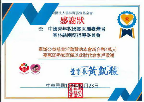 救國團致贈公益日「擲筊慶團圓」4萬元,支持雲林縣雲萱基金會