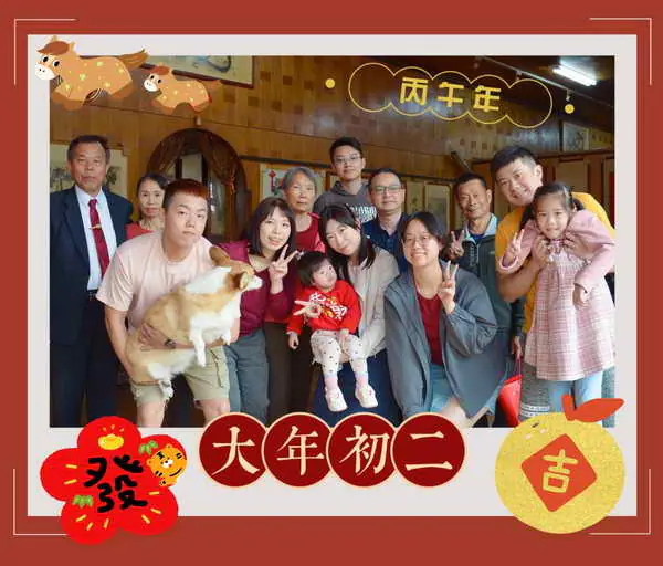 初二(正月初二):初二在傳統上是女性回娘家的日子,已婚女兒會與丈夫、子女返回娘家團聚。依照習俗,要準備成雙成對的回門禮,代表圓滿美好,娘家也會準備豐盛的餐點闔家歡聚。舊時迷信初二以前女性回娘家會為娘家招來厄運,但隨著性別平權受大眾重視,越來越多女性選擇不在夫家過年,或是在初一時就回娘家。