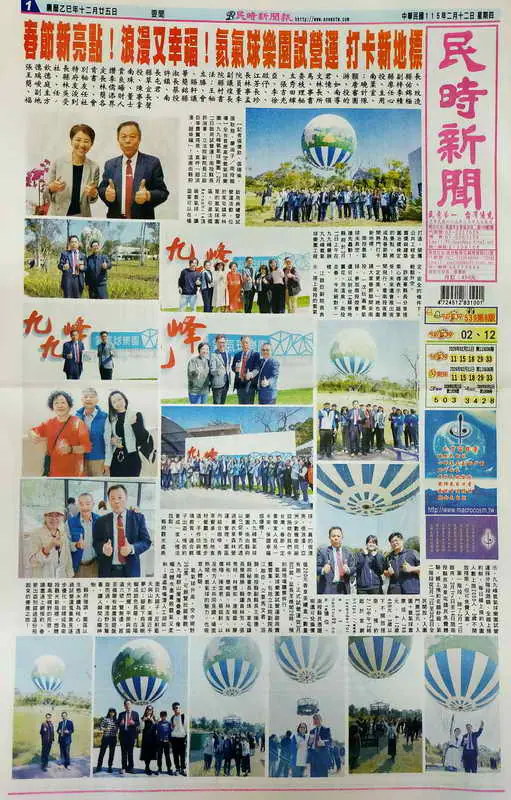 【記者張德欽、張珊瑜、張耿慈、廖淑子/南投報導】【一定要見報】全台首座高空氦氣球樂園「九九峰氦氣球樂園」2月11日啟用試營運!南投縣長許淑華、立法院副院長江啟臣等貴賓搭乘,直呼「超浪漫、超幸福」!這座由縣府打造、榮獲公共工程金質獎與建築園冶獎肯定的景點,將成為春節期間熱門打卡新地標。
