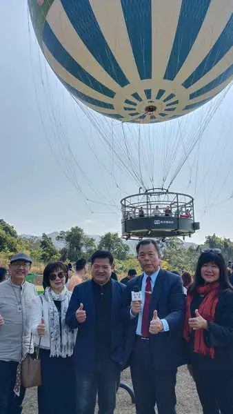 江啟臣副院長表示,搭上南投的氦氣球,「真的很漂亮、很浪漫!亞洲少數幾座同級設施就在我們中台灣,春節一定要帶家人或另一半來,保證幸福感爆棚!」