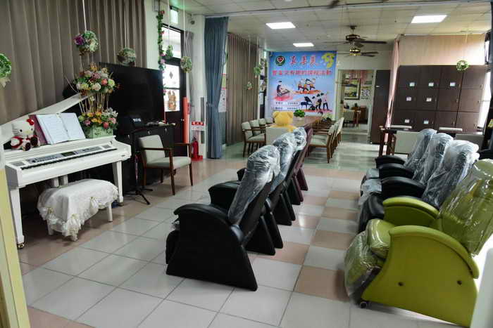 中心可收容25位長者,設有多功能活動教室、視聴休憩區、家屬接待室、泡茶打牌區,戶外設有庭園供應休憩、散步、開心農場及有4床供臨時住宿的喘息服務,場地空間大且環境優美。