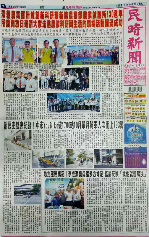 【記者張德欽、張珊瑜、洪凱強/中市報導】農業部農業試驗所今年迎來創所第130週年,該所自1895年創立以來,在臺灣農業發展的關鍵歷程中扮演重要角色,從傳統育種、病蟲害防治、田間觀測,到精準管理、氣候調適、智慧農業等現代科技介入,始終以厚植臺灣糧食安全、強化農業永續韌性為核心使命。為讓更多民眾理解科研如何與生活相連,該所於11月22日(星期六)辦理「深耕農業百卅載 創新科研耀新篇」130週年所慶開放日,邀請社會大眾走進研究場域,一同體驗臺灣農業科學的扎根與前行軌跡。
