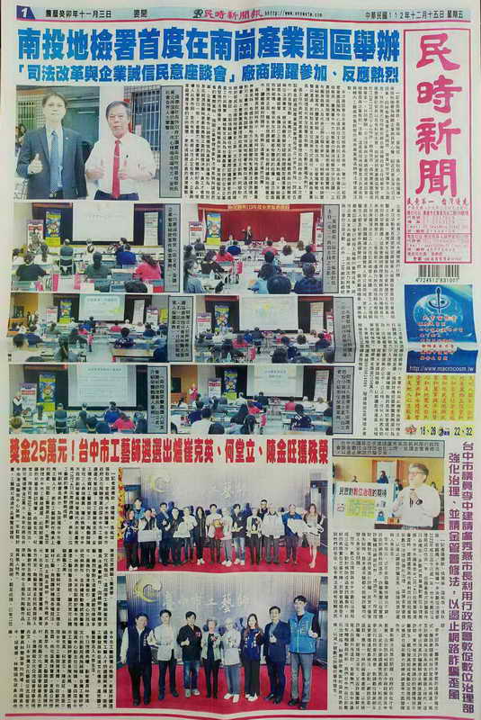 林副秘書長表示,為拔擢台中市優秀工藝人才、表彰工藝師創作傳承上的貢獻,鼓勵工藝發展及創新,每2年辦理台中市工藝師遴選。此屆經過嚴謹的初審及親訪複審,由崔克英、何堂立、陳金旺等3位工藝師脫穎而出,除可獲得獎金25萬元,未來也將在台中市港區藝術中心展開一年駐館計畫,工藝師可透過作品導覽及課程,帶領民眾體驗工藝美學。