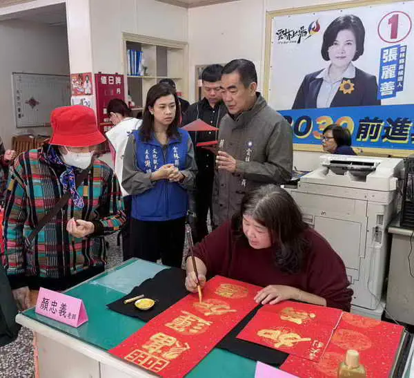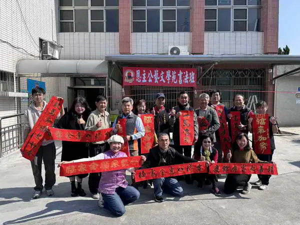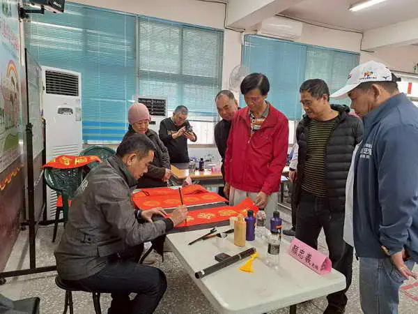 由恩主公藝文學苑黃登仕老師攜手顏忠義議員服務處共同舉辦之斗南鎮社區春聯揮毫接力迎新春活動第2場29日索取春聯絡繹不絕