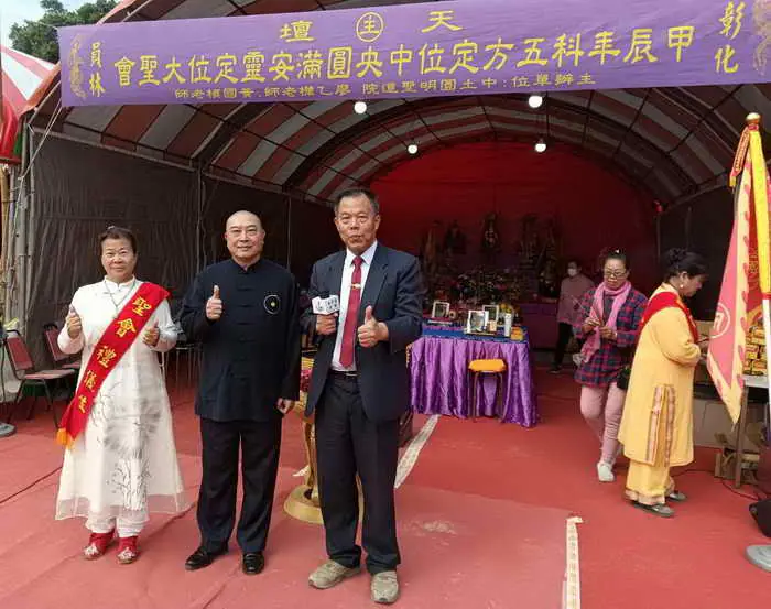 合辦單位:天壇:員林中土圓明聖道院院長廖乙樺老師。人壇:花蓮無極鳳元慈惠堂堂主黃鴻昊老師。地壇:台南無極慈玄天宮胡春玉、方楊棟老師。藥壇:白鶴山一炁天旨玉皇宮(天公廟)劉鴻玄老師。本境萬靈壇:無極慈聖玉天宮廖玉霜老師。五營統兵府:員林中土圓明聖道院。