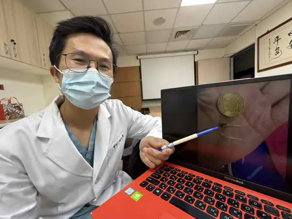 圖一:臺中醫院急診科林記賢醫師說明喉卡異物狀況情形。