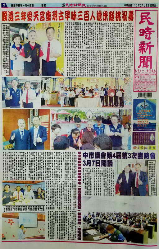 圖文:張德欽社長與南投縣政府民政處長林琦瑜、立法委員游顥、名間鄉長陳翰立、南投市長張嘉哲、縣議員張婉慈、簡千翔、林憶如及與會人士特別肯定讚賞受天宮主委陳登岳所領導的團隊、用心積極造福地方,受到社會各界人士掌聲,同時敬邀各界十方大德共襄盛舉。
