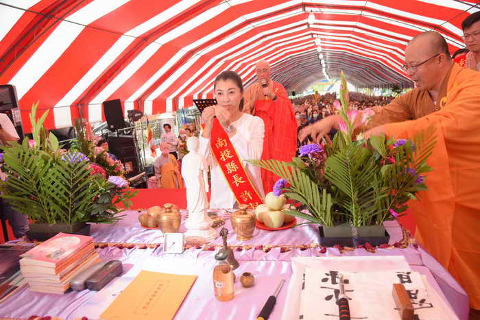 縣長許淑華致詞表示,綠美橋是南投市重要的橋樑,興建完成至今已27年,當地居民都會橫跨此橋上班、上學等,對於市民來說是不可或缺的通道。為了讓用路人在行經時,能夠行得安心,感謝廣心法師慈悲鼎力協助,相信透過這場陰超陽泰、冥陽兩利的佛事,能幫助亡靈往生善處,並在佛光普照之下,庇祐地方人民平安吉祥。