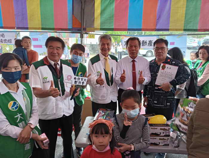 圖三:張德欽社長與草屯區主委洪明鑫特別肯定讚賞89攤來自不同縣市的攤商以實際行動力挺園遊會愛心共襄盛舉。