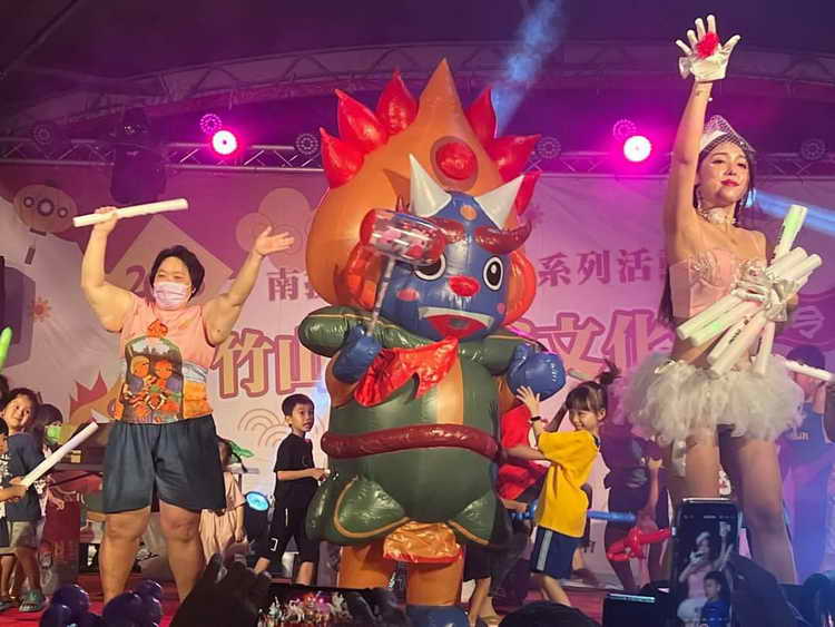 竹山大士爺文化祭,熱熱鬧鬧展開,從大禮路到大明路口、三角圓環沿前山路至大明路口,都是活動會場,為了創造活動特色,活絡地方產業,活動規劃美食街及攤位,安排各種節目,包括網紅表演等等,活動期間消費美食、文藝產品等達100元即贈送摸彩券1張、200元2張,以此類推,文化祭3天,天天都有摸彩活動,獎品豐富,就是要讓竹山熱鬧起來。