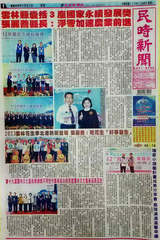 今第十九屆雲林文化藝術獎頒獎,包含雲林縣長張麗善、縣政總顧問張清良、縣府文化觀光處長陳璧君、縣議員顏忠義、江文登議員、陳芳盈議員助理陳宜盈等與所有得獎者、雲林藝文領域先進蒞臨盛會。