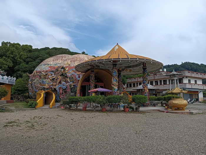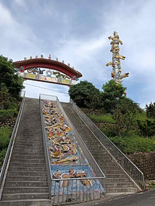 十九龍柱又稱(護國天柱),高達三十公尺 ,由十九條金龍盤旋而上,柱頂塑觀世音菩薩立像,持淨瓶柳枝,象徵澤被蒼生:高高的矗立在廟前廣場左前方;是全台最高的龍柱,夜間可由十九條龍的眼睛發出三十八道強力燈光,閃爍耀眼的光芒四射,蔚為奇觀,據了解,此一巨型龍柱建造經費,全數均由一位賣檳榔的老嫗所捐獻。