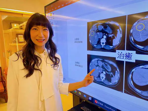 圖二:張碧倚主任說,透過載藥微球栓塞結合免疫療法,為肝癌復發患者治療效果佳。