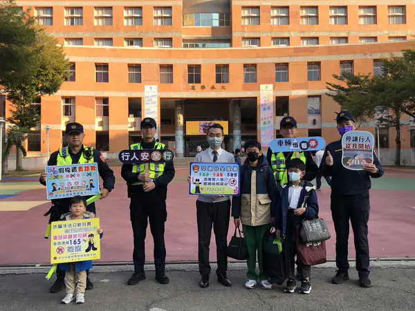中市警四分局特別派交通組楊警務員、黎明派出所郭所長暨警員前往南屯區惠文國民小學,與校方及志工媽媽合作執行護童勤務,確保學童安全進出校園。警方並強調「詐騙查證速撥165」、「行人安全行」、「車輛慢看停」等交通安全等重要觀念,提升學童交通與人身安全意識。