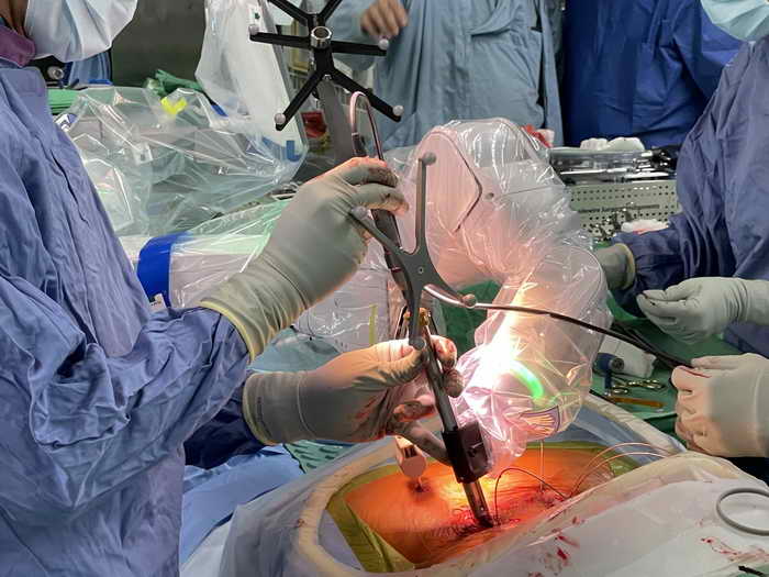 最新型瑪佐脊椎機械手臂問世,臺中榮總院長陳適安、副院長李政鴻率領骨科部主任陳昆輝,與脊椎外科主任潘建州團隊同仁,規劃引進此設備,今年2月順利完成裝機,經嚴格程序裝機、測試、驗證後,3月6日順利完成全國首例手術。