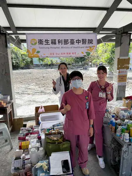 國慶連續三天假期,臺中醫院不但提供連假期間白天門診正常為民服務,還由花蓮正妹醫師柯昊錚領軍,攜手蕭子涵與洪瑜緹兩位熱血護理師,返鄉投入救災醫療服務,三人在國慶日前一天搭乘高鐵轉台鐵、或高鐵轉自駕,超過六小時的車程後才抵達災區,十日清晨即前往災區第一線佛祖街搭設醫療站進行醫療救災服務。