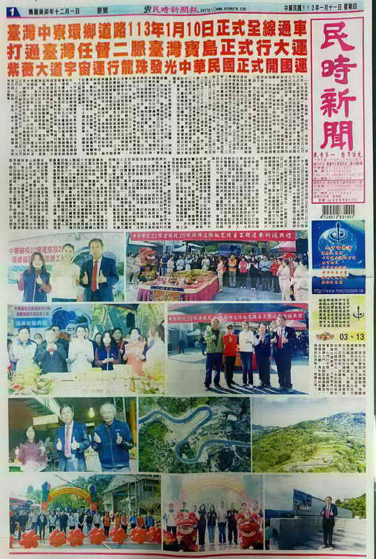 圖文:臺灣中寮環鄉道路113年1月10日正式全線通車打通臺灣任督二脈、 臺灣寶島正式行大運,紫薇大道宇宙運行龍珠發光、中華民國正式開國運。