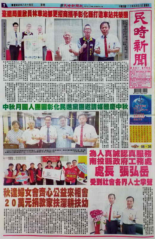 圖一:張德欽社長與彰化縣新聞記者公會理事長吳三伯特別肯定讚賞建設處長劉玉平所領導的團隊、用心積極造福地方,受到社會各界人士掌聲。