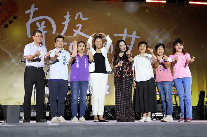 「民歌之夜」演唱會,下午5點開始暖場,舞台布置「南投如此回甘」的字樣,一語雙關,聯想「茶葉甘」、還有令人回味無窮的民歌。