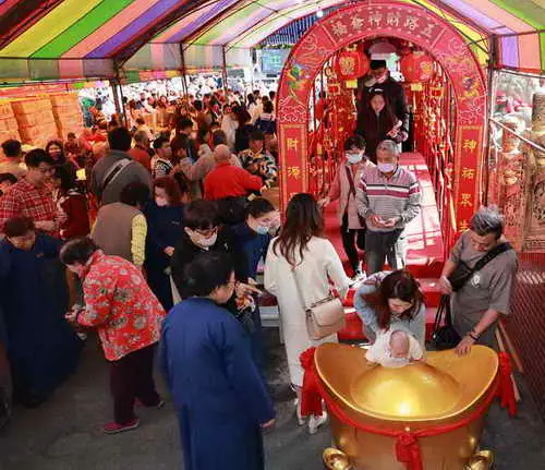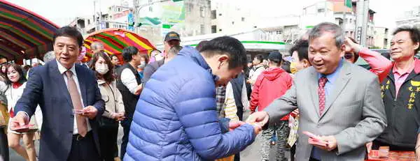活動高潮在廟前廣場,王副縣長與鎮長等人發放新年小紅包,民眾排起長龍,開心領取,希望討個好彩頭。許多人領完紅包後,還特地「過爐」祈福,期待財神爺加持,期待馬年好運滾滾來、財運亨通一整年!