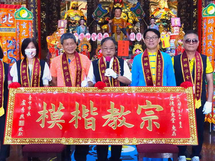 圖文:西屯慈德慈惠堂熱心公益造福鄉里 中市府贈匾「宗教楷模」。