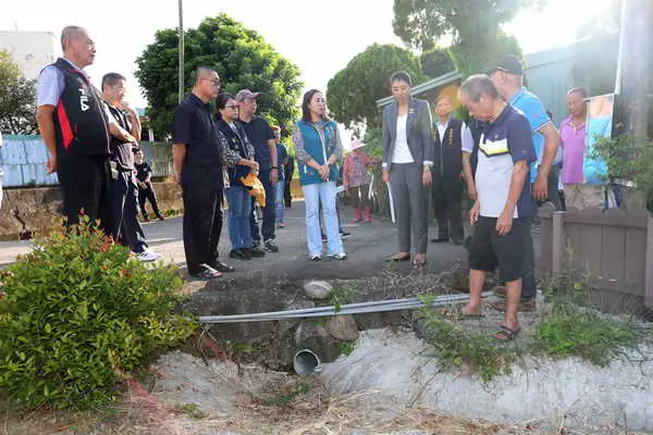 接著,許縣長還實地會勘了北山村種瓜巷18-1號前巷道亟待改善的破損路面,及福龜村13鄰仙佛寺大門前停車場旁的巷道路面破損及水溝蓋凹陷、凸起,影響車輛通行安全等問題,除簽核約40萬元將加速重鋪路面改善,許縣長在聽到福龜村13鄰村民憂心反映該停車場排水不及,恐有波及下方社區民宅之虞,也立即與及時趕到的仙佛寺執事人員研商,將在取得仙佛寺同意後,協助改善停車場與社區道路間的排水問題,讓困擾村民多時的問題迎刃而解。