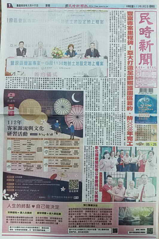 圖文:豐富專案里程碑!亞大打造全齡照護園區今簽約、拚2028年完工。