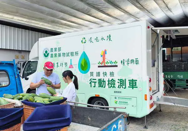 圖文:質譜快檢行動檢測車一測即安 助農友輕鬆把關農產品安全。