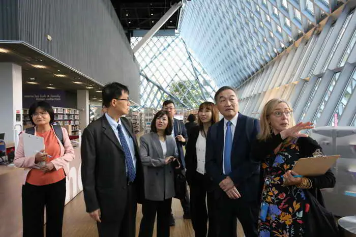 由於西雅圖中央圖書館是西雅圖公立圖書館系統的旗艦館,內部規劃與外觀設計均世界知名,台中綠美圖也是知名國際建築師所設計,希望互相學習交流,也邀請館長來台中參加綠美圖開館後的系列活動或研討會擔任講座。