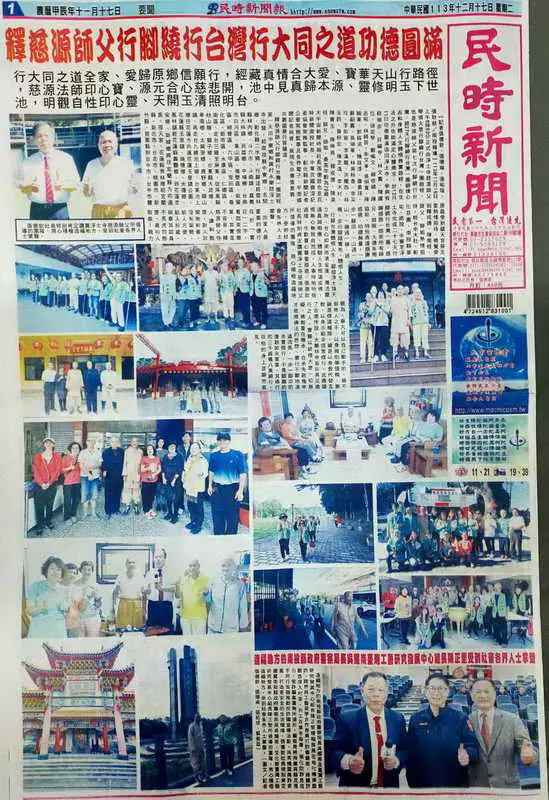 行腳台灣體悟人生、腳踏淨土頂天立地,台心如來地湧金蓮、灣流靈通真誠相應,體驗人生悟道成佛、悟無心無我自然成,人事時地物皆過境、生歡喜心尊重感恩。張德欽社長特別肯定讚賞淨土寺慈源師父所領導的團隊、用心積極造福地方,受到社會各界人士掌聲。