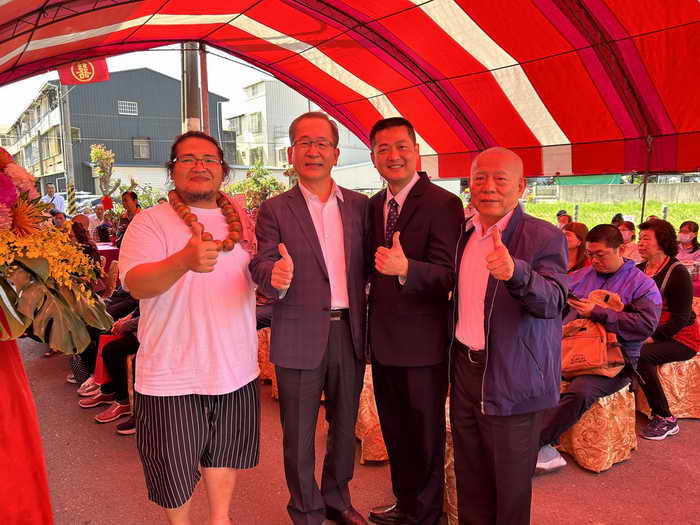 圖一:由左起彰化縣新聞記者公會理事長吳三伯、阿良古味生活館館長高肇良、法務部矯正署桃園女子監獄典獄長林憲銘、劍走江湖琴御刀酒飲豪使林峻漢現場合影。(記者張德欽攝)