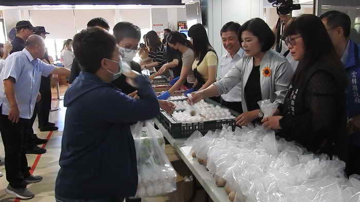 縣長張麗善表示,最近蛋價低迷,不符成本,成本每台斤約30.5元,產地蛋價卻僅有25.5元左右,每賣出1斤的雞蛋,蛋農就得損失5元,加上先前蛋荒,農業部自國外進口雞蛋及開放超量種母雞等配套未規劃完善等因素,造成雞蛋產銷失衡,所以今天我們舉辦雞蛋行銷活動,雞蛋營養十分豐富,有益健康,一個人一天吃兩顆蛋,尚無過量疑慮,希望鄉親能夠多採購,協助蛋農。