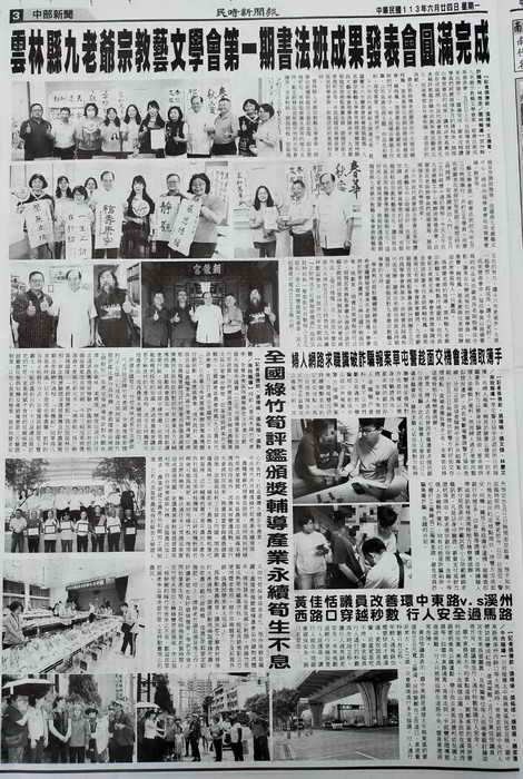 圖文:雲林縣九老爺宗教藝文學會第一期書法班成果發表會圓滿完成。