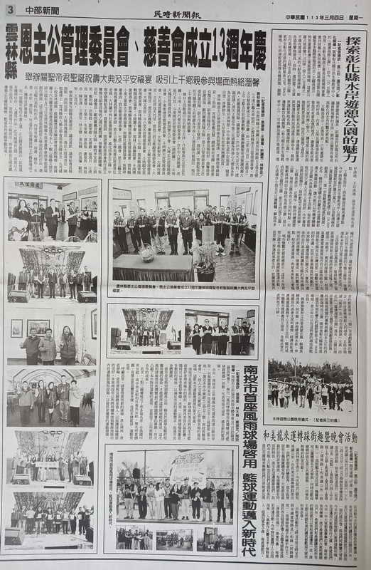 雲林縣恩主公管理委員會、恩主公慈善會成立13週年慶 舉辦關聖帝君聖誕祝壽大典及平安福宴