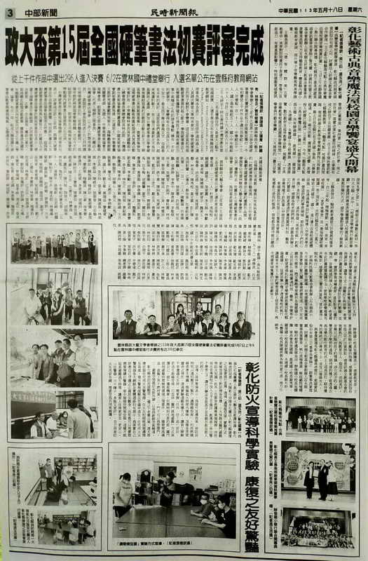 圖文:雲林縣政大藝文學會舉辦之113年政大盃第15屆全國硬筆書法初賽評審完成6月2日上午9點在雲林國中禮堂進行決賽將有近300位參加。