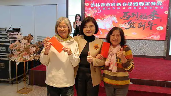 雲林縣長張麗善、謝副縣長、張清良總顧問及主管幾乎全到,主辦之新聞處還窩心準備樂團來祝興,縣長還準備32個紅包給上台高歌一曲之媒體朋友或眷屬小孩溫馨滿堂,縣長帶領副縣長及女性主管上台合唱甜蜜蜜,在重賞之下不用點名皆非常主動上台獨唱或合唱大家度過新的一年一馬當先馬上抱富歡樂滿堂。