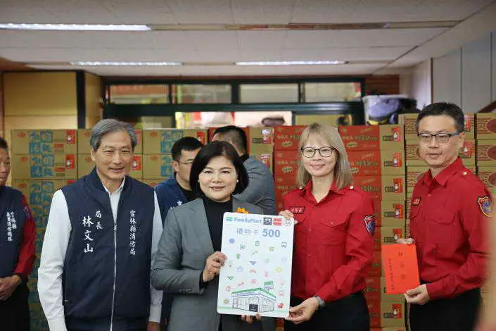 圖文:雲林縣過年期間強化防救災安全協勤慰問品發放 縣長張麗善感謝消防及協勤民力 守護鄉親生命財產安全。