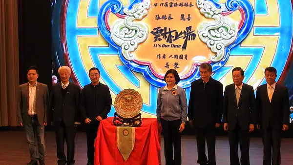 知名交阯陶大師吳榮特別創作作品「龍耀花開」贈予張麗善縣長,象徵雲林縣勇於迎接挑戰、邁向光明未來。他感謝張縣長推動文化政策,讓雲林脫離文化沙漠,展現藝術與文化新氣象。